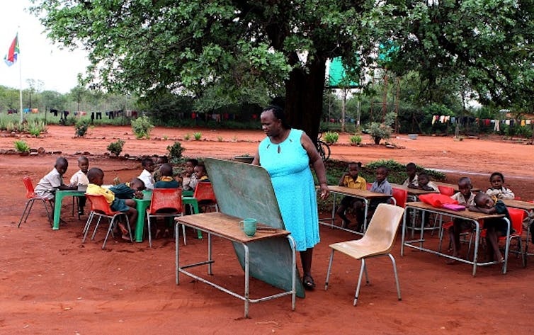 A teacher conducts a lesson under a tree in Limpopo Province. Sandile Ndlovu/Sowetan/ Gallo Images /Getty Images